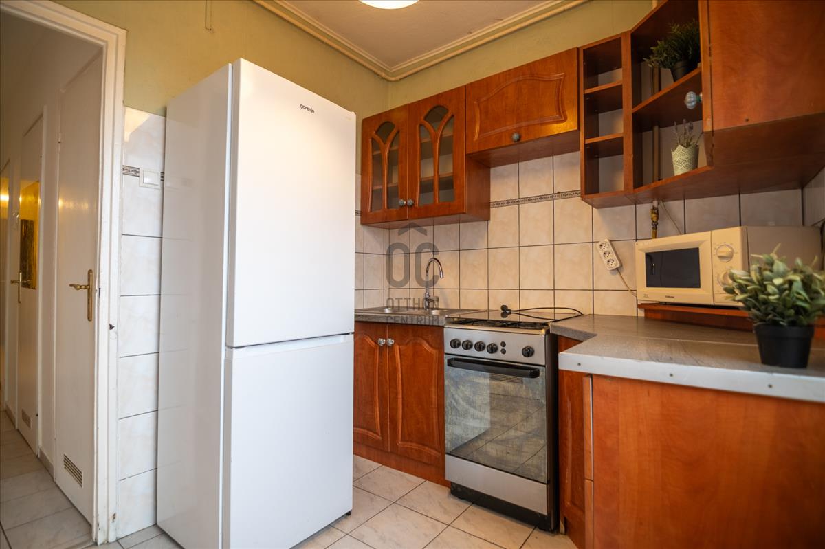 -A 3 szoba mellett egy kényelmes elrendezésű konyha is található, amelyben egy kis étkezőasztalnak is marad hely.