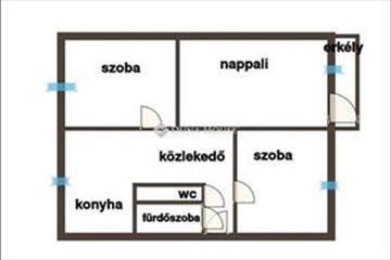 Az ingatlan elosztása: tágas nappali, két külön szoba, konyha, fürdőszoba, külön wc, valamint erkély. a nappaliból nyíló erkély parkosított területre néz, ahol játszótér is található.
