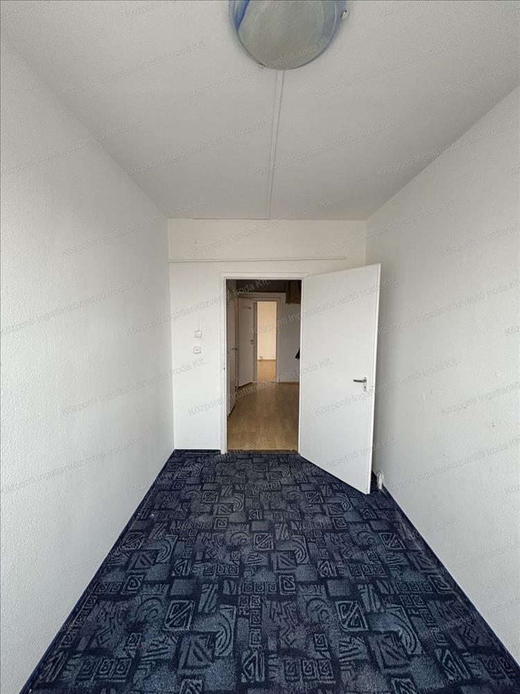 Három szoba szőnyegpadlóval, a negyedik szoba, az előszoba és a konyha laminált padlóval, a fürdőszoba és a wc járólappal burkolt.