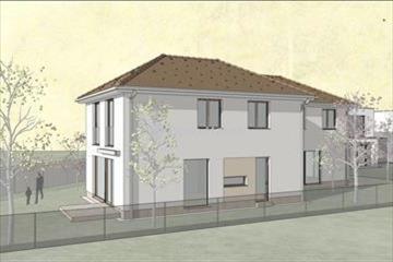817 nm-es telken 3 lakásos sorház, szélső lakása 105 nm + 147 nm saját kertrész.