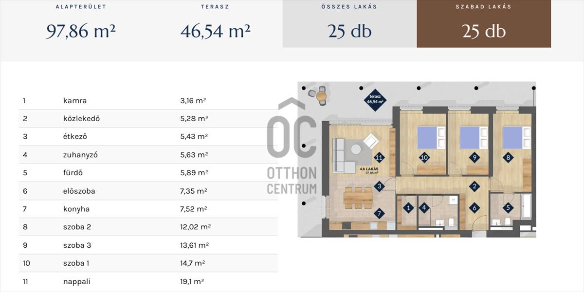 25 db 98-105 m2 lakás 46, 5 m2 terasszal