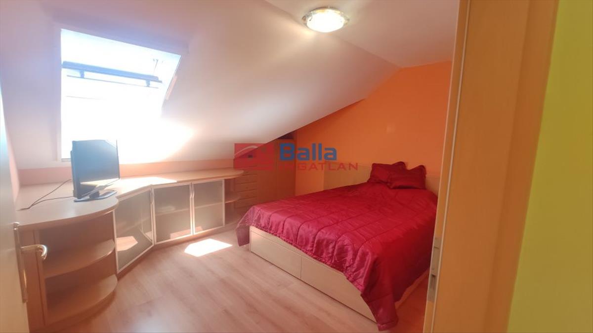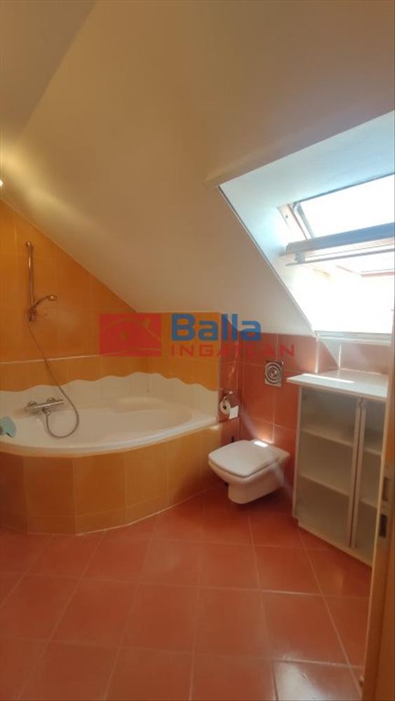 A téglaépítésű 86 m2 alapterületű ingatlanhoz 18 m2 Dny-i fekvésű fedett terasz tartozik a legfelső emeleten. Tágas, világos amerikai konyhás -étkezős nappali, fürdőszoba (Wc), előtér egészíti ki. Innen vezet lépcső a felső szintre, ahol 2 szoba, dolgozó szobának kialakított előtér és fürdőszoba (Wc) vár minket.