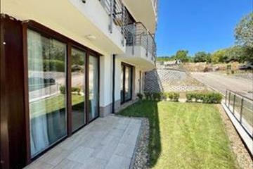 A 77 sqm, 2-bedroom, ground-floor, panoramic apartment with direct garden access is for sale in the Forest Hill residential park in the 3rd district. The spacious, bright, American-style living room with kitchen is southeast facing, from here you can open up to the 12 sqm covered terrace and the private garden. The two bedrooms are located on either side of the living room, making it an ideal layout for a family or a home office.