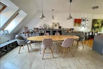 Budapest IX. kerületének szívében, egy csendes, zölddel szegélyezett, sétáló jellegű, csökkentett forgalmú utcában kínálunk megvételre egy páratlan hangulatú, bruttó 142 m²-es kétszintes művészlakást – saját 40 m²-es intim tetőterasszal, lenyűgöző kilátással a belvárosra és a Budai-hegyekre.