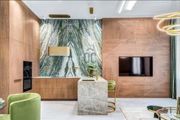 A belső teret a kifinomult dizájn és a részletek iránti tisztelet jellemzi. a parketta meleg árnyalatai és a különleges textúrák az elegancia és a nyugalom érzését keltik, a zöld és barna tónusok eközben otthonos hangulatot teremtenek. Az arany kiegészítők, ékszerekként fénylő lámpatestek, a tükrök és más apró részletek kiemelik a tér luxusát, anélkül, hogy túlzásokba esnének.