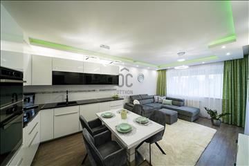 - teljesen gépesített konyha: Whirlpool beépített hűtő, sütő, mikro, mosogatógép, indukciós főzőlap