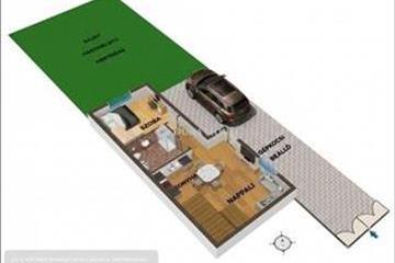 A ház belsőépítészeti elrendezése kétszintes. Az alsó szinten egy tágas nappali fogad, mellette található egy külön szoba, amely ideális lehet szülői hálónak, vendégszobának, dolgozószobának, valamint egy vizesblokk. a felső szint, amely a tetőteret foglalja el, két hálószobát és egy újabb vizesblokkot kínál, így összességében nagyobb családok számára is kiváló választás. Az ingatlan kulcsrakész állapotban kerül átadásra és amennyiben a burkolatok még nem kerültek a helyükre abban az esetben a vevő választhat is kedvére valót.