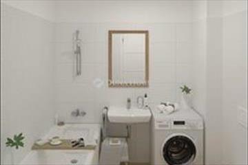A lakás fehér tónusú burkolatokkal készül, amelyek elegáns, letisztult alapot biztosítanak bármilyen belső stílus kialakításához.