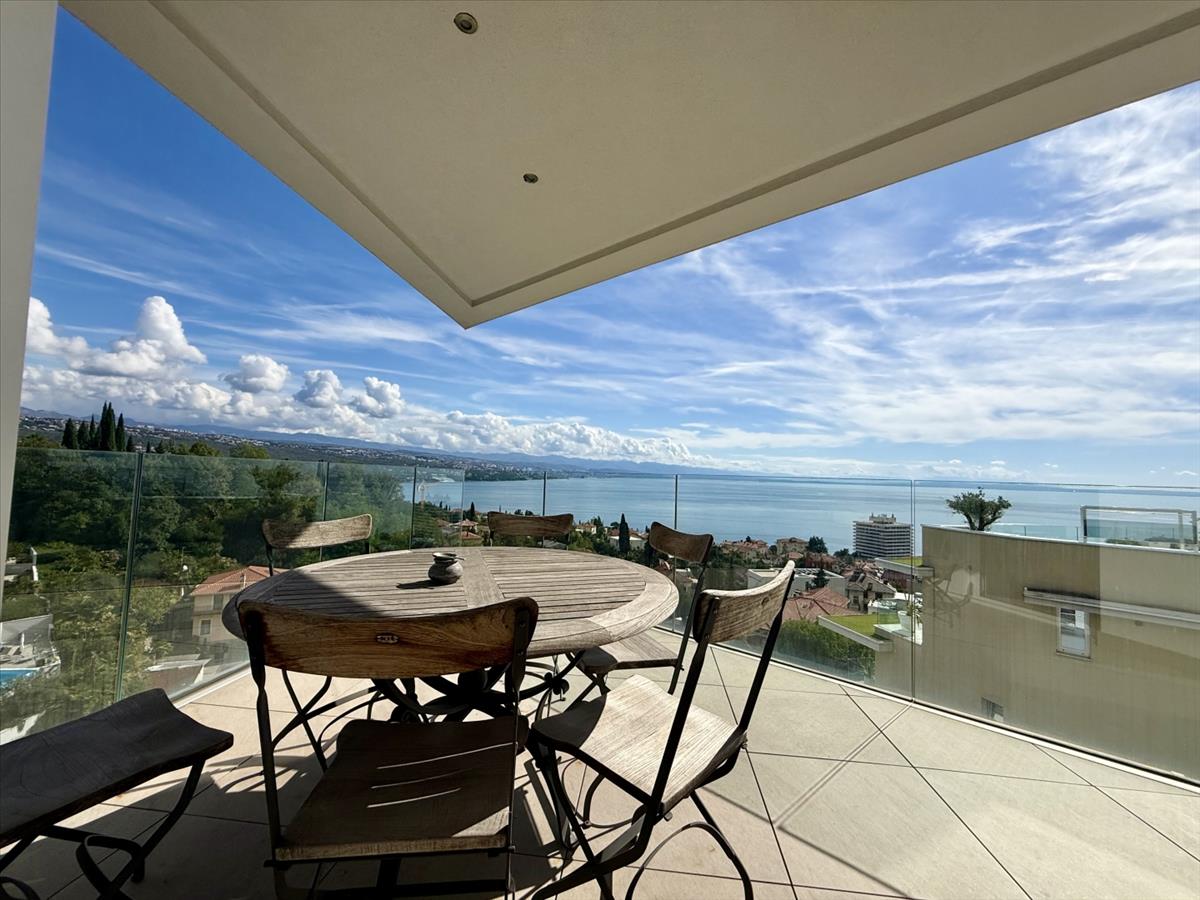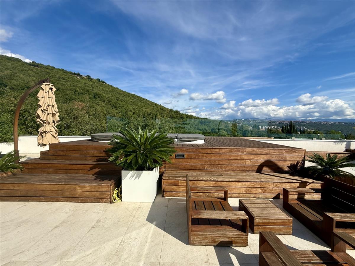 Exkluzív penthouse eladó egy prémium helyszínen, a neves Opatijában, mindössze 400 méterre a tengertől!Bemutatjuk ezt a kivételes lehetőséget, hogy megszerezzünk egy 267 m²-es luxus, két szintes penthouse-t, amely Opatija egyik legkeresettebb területén található. Ez az egyedi ingatlan ritka kombinációt kínál a kiváló elhelyezkedés, a magas színvonalú dizájn és a lélegzetelállító panorámás kilátás között a tengerre és az Opatijai Riviérára.