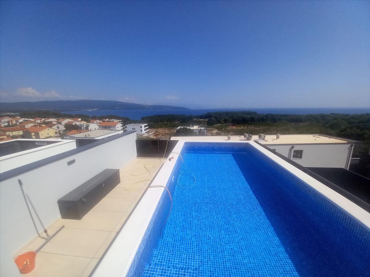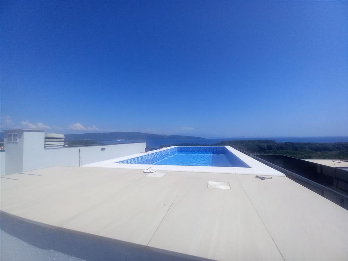 Duplex penthouse medencével és panorámás kilátással Krk városában, 400 m-re a tengertől, eladó!