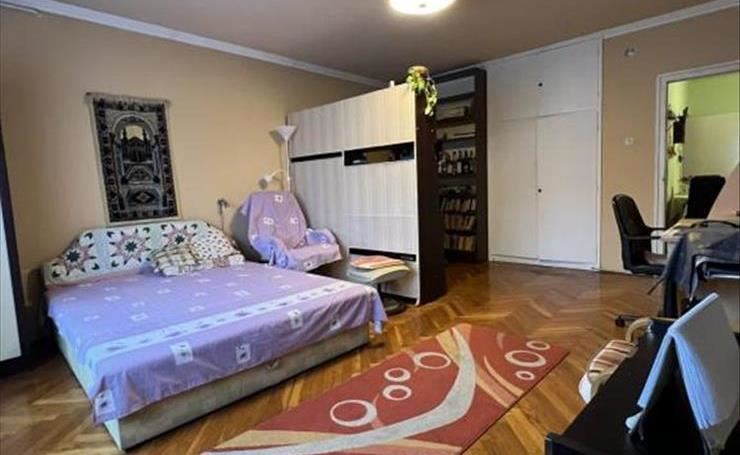 A 83 nm-es lakás jó elrendezésű tágas szobái parketta a többi helyiség járólap burkolatú.