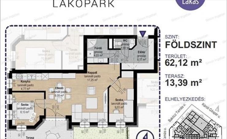 A lakás 62, 12 m2, melyhez 13, 39 m2-es terasz tartozik.