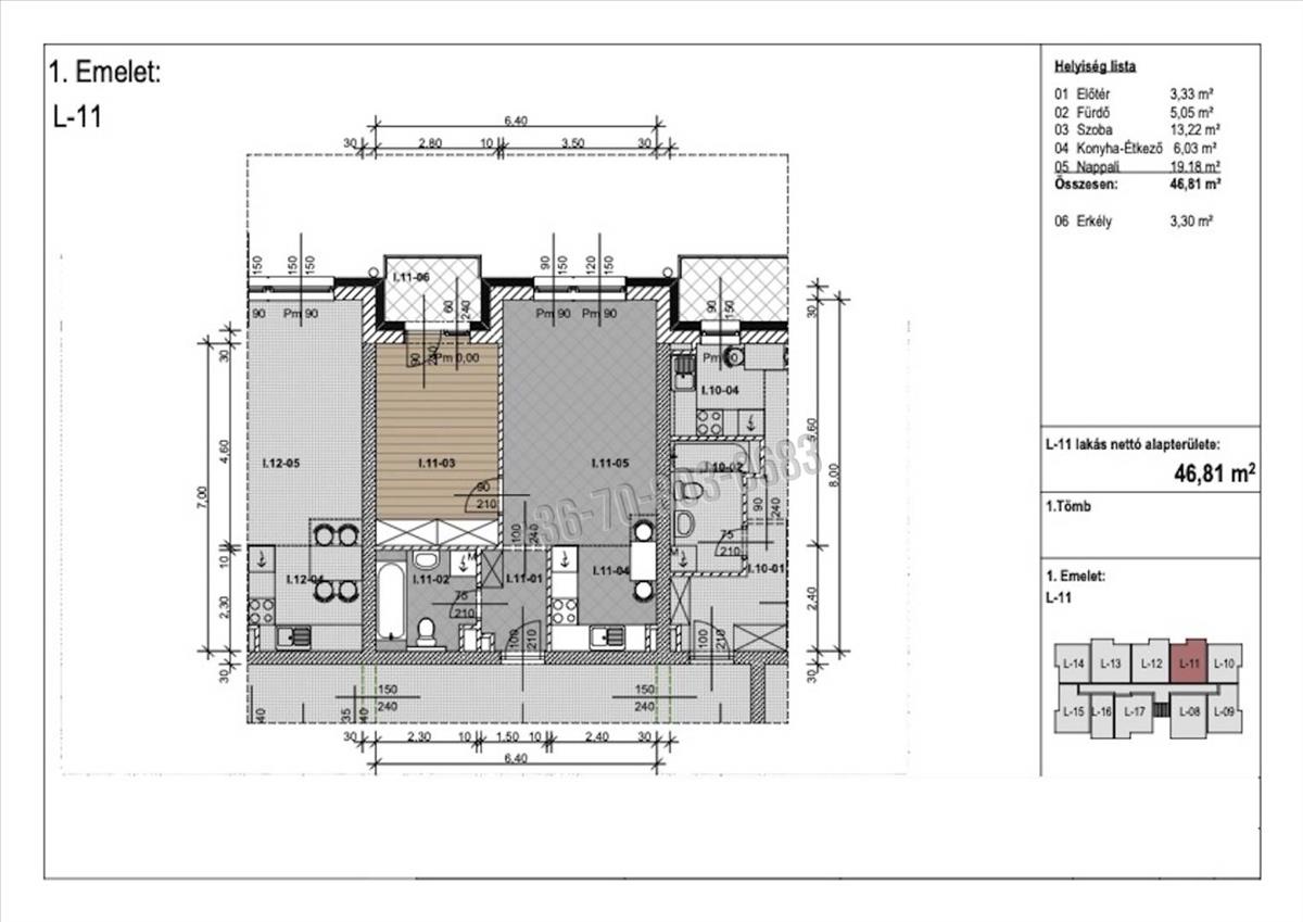 Jelen hirdetésben szereplő első emeleti lakás 46, 81 m2 hasznos alapterülettel rendelkezik, elosztását tekintve rendelkezik egy amerikai konyhás nappalival, hálószobával, egy fürdőszobával, valamint egy 3, 3 m2 nagyságú erkéllyel.