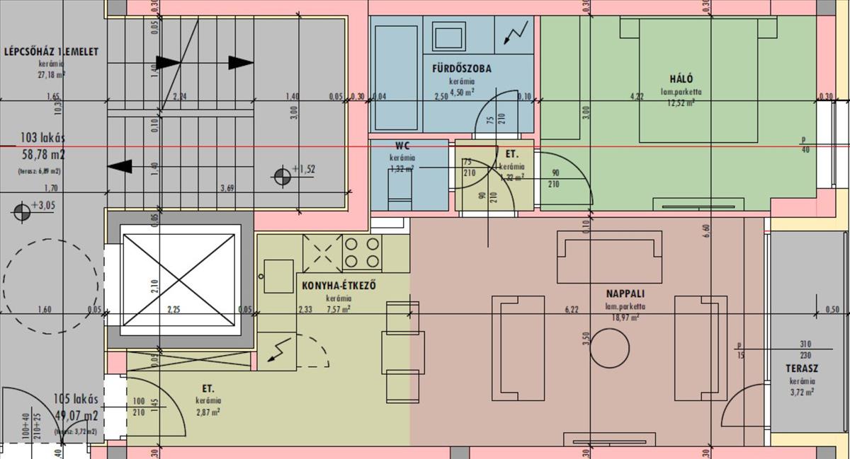 1. emeleti lakás jellemzői: