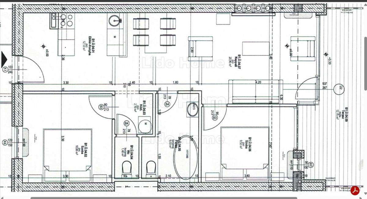 -Nappali + 2 hálószoba 63 m2 + a két terasz felével számolva összesen 77 m2 a lakás + a saját kert 73 m2.