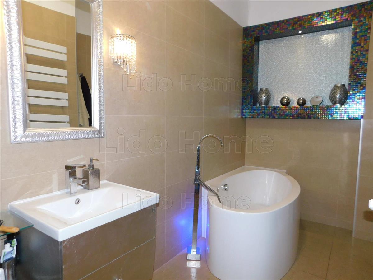 -Egyedi belsőépítészeti megoldások került kivitelezésre, lakáson belül. Padlóba épített led fény világítás, a fürdőfal különleges egyedi tervezése
