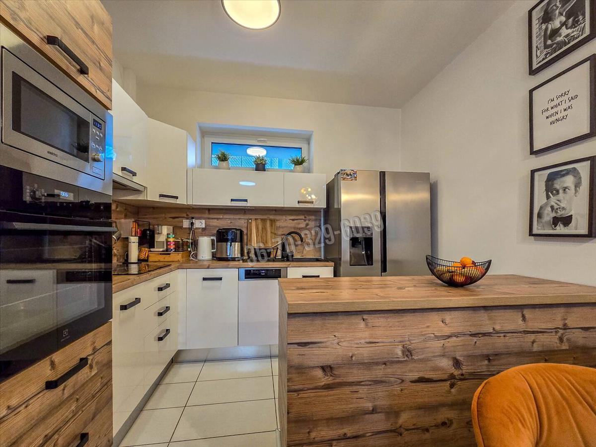 Az 56 m²-es amerikai konyhás nappali + 1 hálószobás lakás modern, fiatalos kialakítású, minden részletében a kényelmet szolgálja. A plafonig érő beépített szekrények, az újszerű konyhabútor konyhaszigettel, a kádas fürdőszoba, a külön WC és a tágas előszoba harmonikus, letisztult életteret biztosítanak.