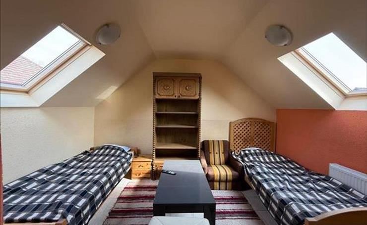 Rétság központjától pár perces sétatávolságra kiadó egy 6+2 fő részére alkalmas munkásszálló.Az ingatlanban három darab két ágyas különálló szoba került kialakításra, viszont összesen 8 fő részére biztosított férőhely. a földszinti szoba külön zuhanyzóval és mellékhelyiséggel rendelkezik, a tetőtéri szobák egyike csak zuhanyzóval, de mind a két szinten kialakításra került vizesblokk, ezeknek elhelyzkedését a képek között található alaprajz mutatja. a földszinten helyett kapott még egy tágas ebédlő és egy gépesítéssel ellátott konyha is. Fűtését és melegvíz-ellátását gázkazán biztosítja, a hőleadók radiátorok.