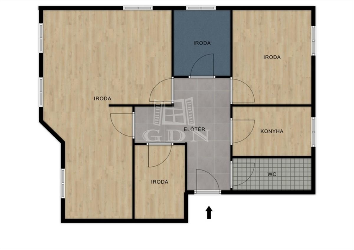 A bérbe vehető iroda az épület tetőterében található, bruttó alapterülete közel 100 nm, hasznos alapterülete megközelítőleg 70 nm, felosztását tekintve négy irodahelyiség, mellékhelyiség, előtér és teakonyha kialakítású. Fűtése és meleg vízellátása gáz-cirko rendszerrel megoldott.