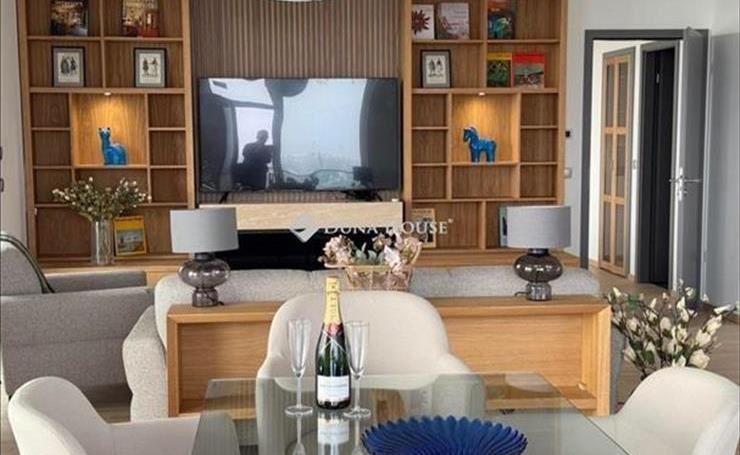 A tágas, világos amerikai konyhás nappali padlótól plafonig érő üvegfelületeivel természetes fénnyel telik meg, miközben a Duna látványa mindennap élvezhető. Az egyedileg tervezett, teljesen gépesített konyha márványhatású munkalappal és prémium beépített gépekkel felszerelt, ahol a funkcionalitás és az esztétika tökéletesen találkozik.