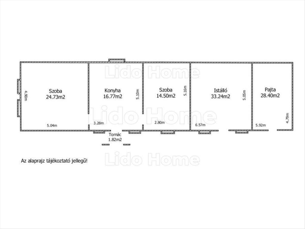 - a lakóépületben egy nagyszoba, konyha, kamra található, mellette van egy 34 m2-es istálló - amelyet egybe lehet nyitni a házzal, a végén pedig csatlakozik hozzá egy kisebb pajtaépület - amelynek a tetejét már újra kell építeni