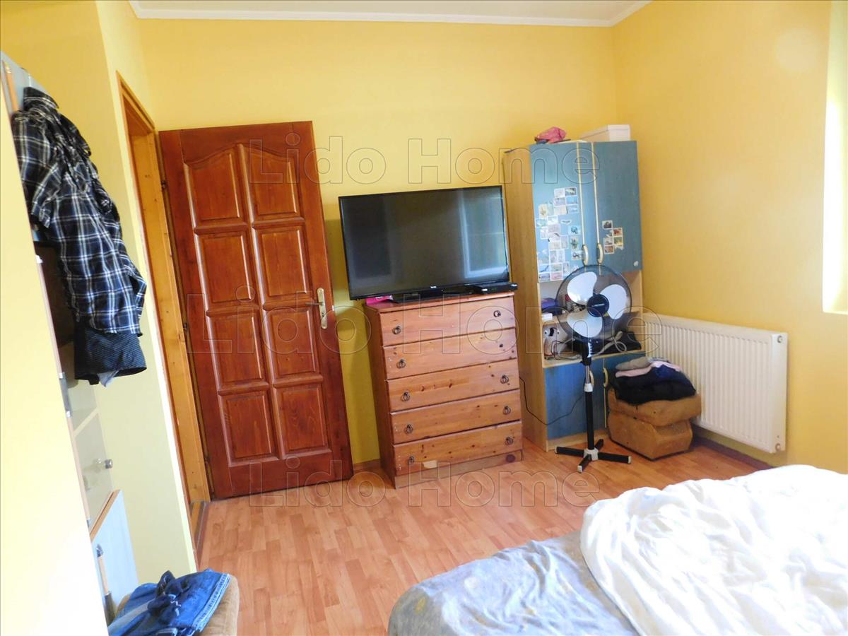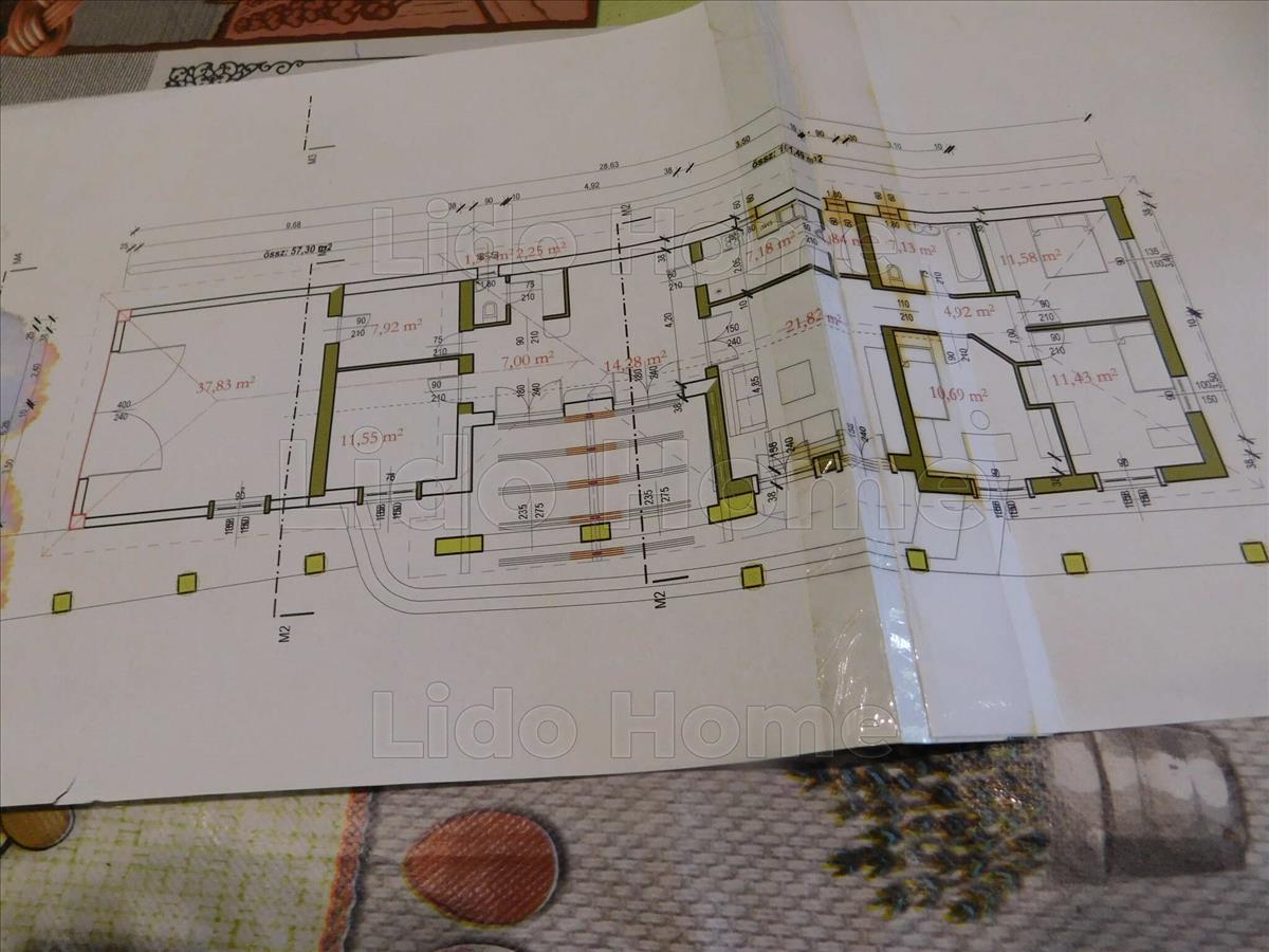 -Újabb építésű ház elrendezése: 2 autó beállására alkalmas terem garázs, 4 db szoba, 1 nagy nappali, 1 fürdőszoba + wc sarok káddal, közlekedő, előszoba, konyha, étkező, vendég 1db wc, 1 db éléskamra, spájz, háztartási helyiség, fedett nyitott terasz.