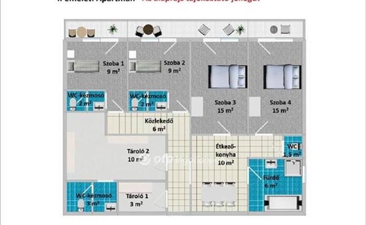Emeleten: 2 lakás (ebből az egyik apartman jellegű)