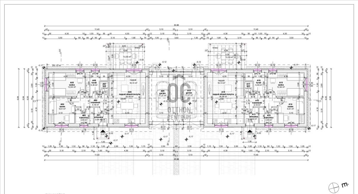 * 65, 96 nm hasznos alapterület + 13, 5 nm-es pergolával fedett terasz