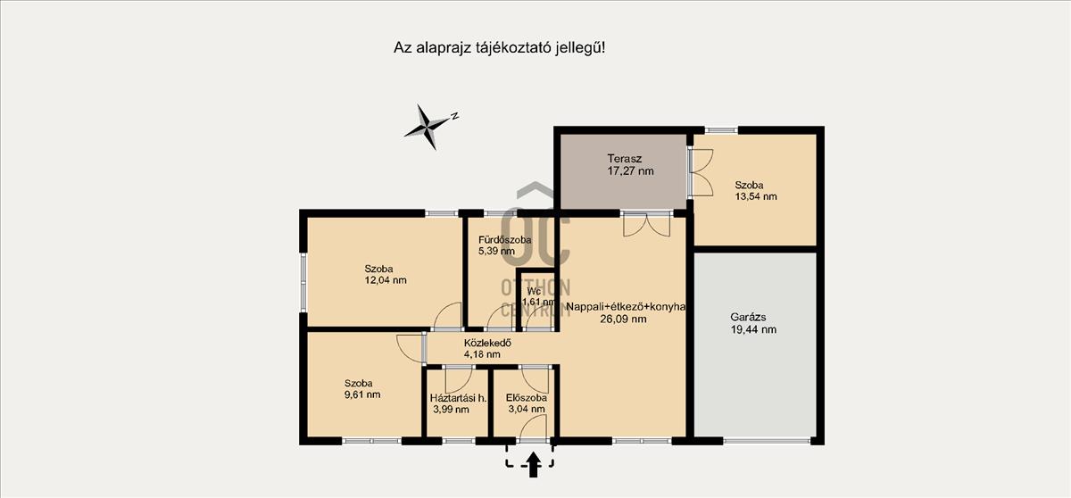 * Amerikai konyhás nappali étkezővel, 3 szoba, 1 fürdőszoba + wc, külön illemhelység, terasz + 1 beállásos garázs