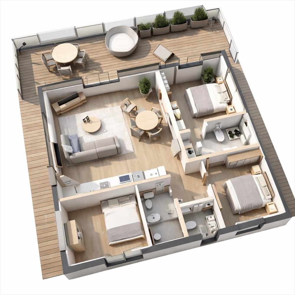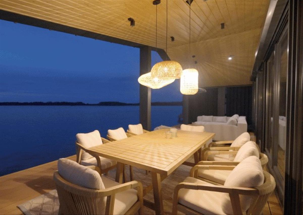 3 hálószoba, 2 fürdőszoba, nappali–konyha–étkező, valamint külső bejáratú wc biztosítja a kényelmes mindennapokat. a belső terekhez egy hatalmas, vízre néző terasz kapcsolódik étkezővel és ülőgarnitúrával, valamint csónak(ok) dokkja is kialakításra került.
