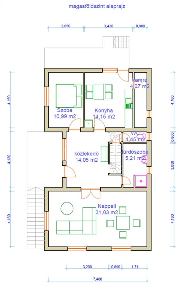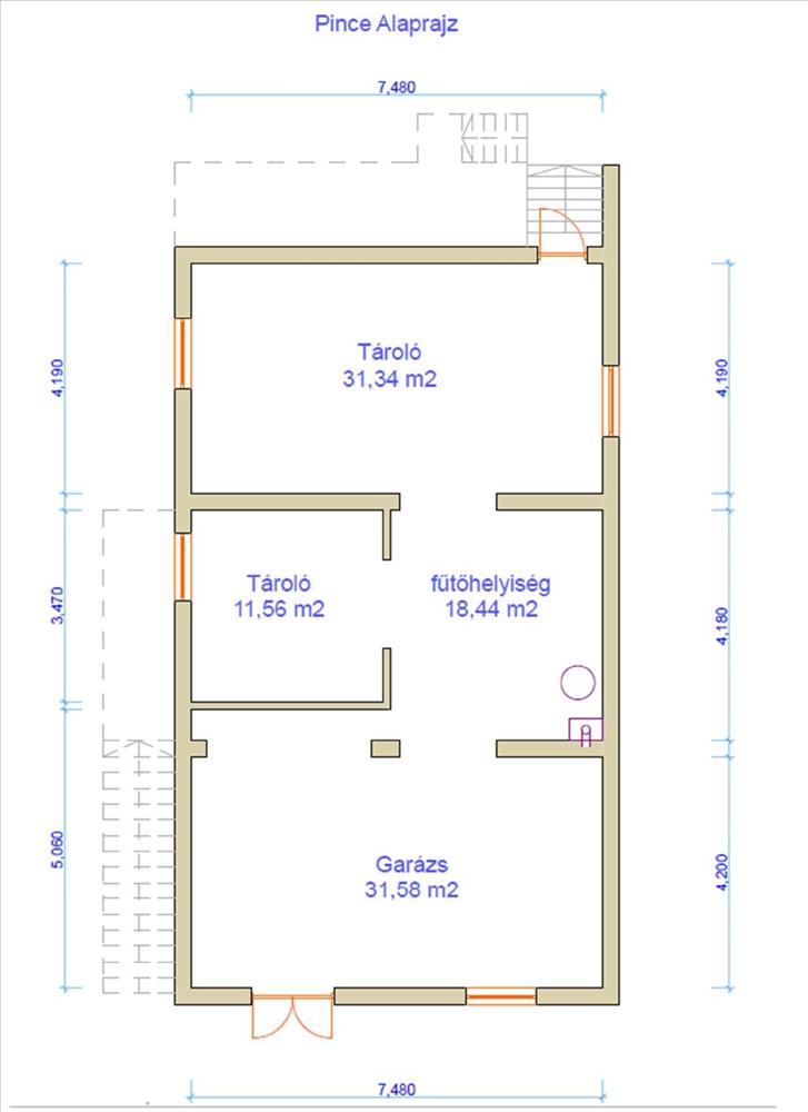 - a pince beépítetlen, ezért a hasznos alapterület számításánál ½ pinceszinttel került figyelembevételre