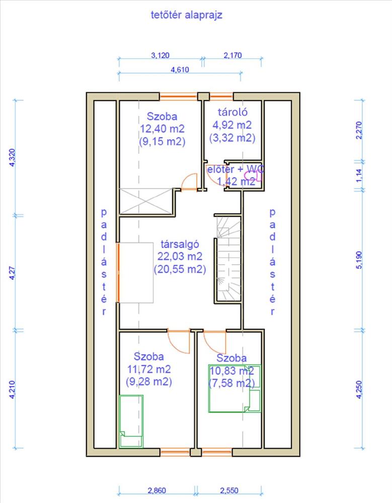- Tetőtér:Beépített