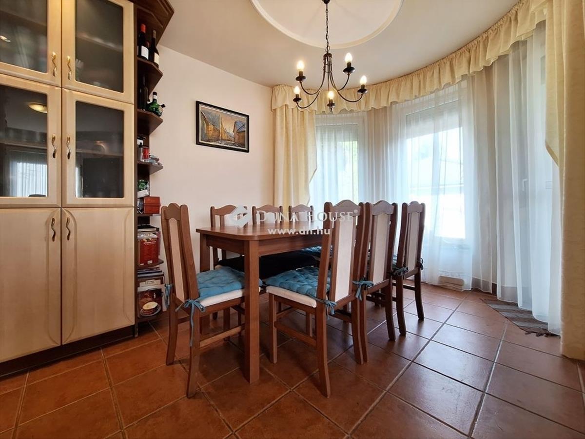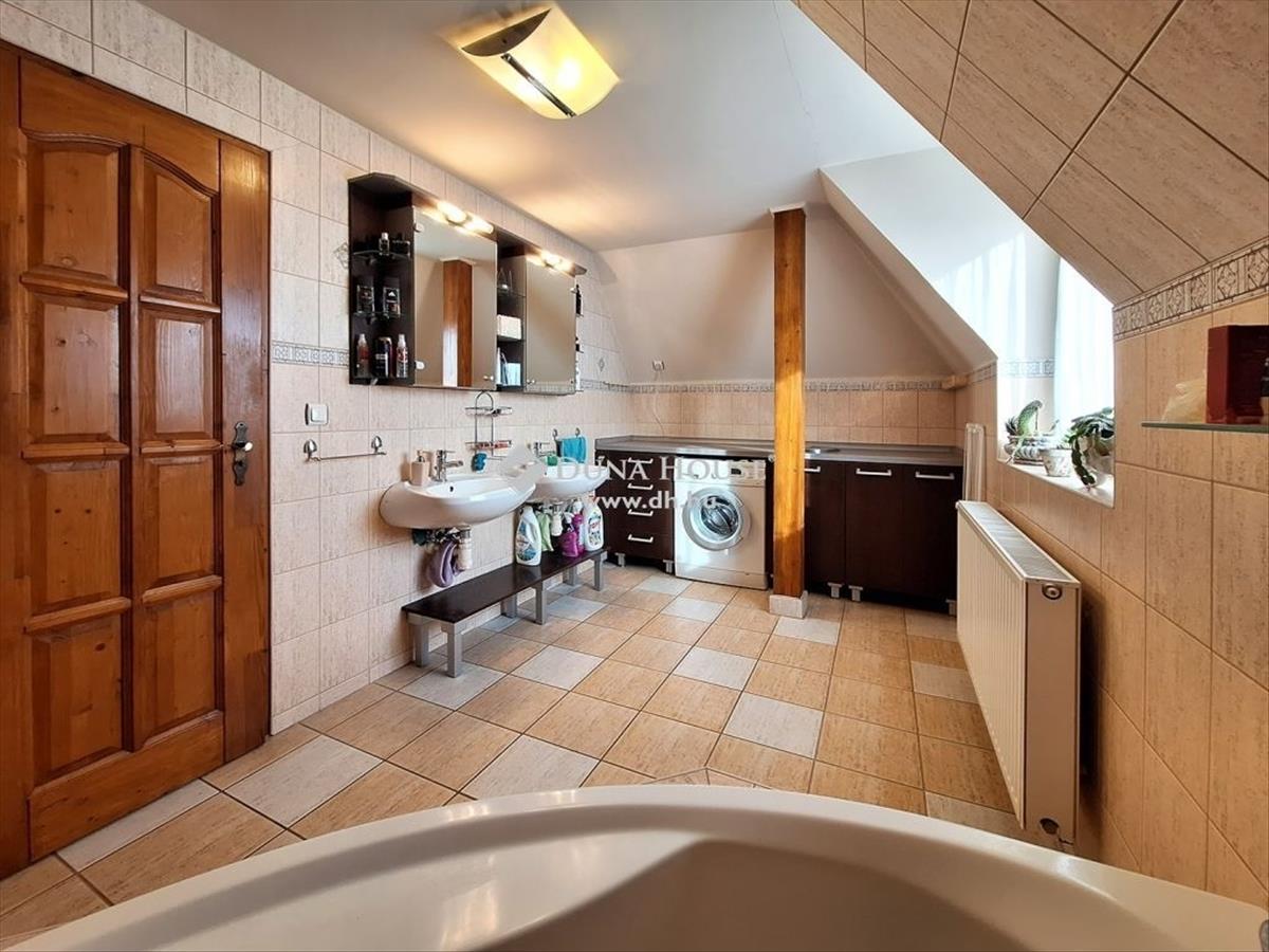 A hatalmas konyha minden háziasszony álma, prémium gépekkel, így beépített mosogatógéppel, szagelszívóval, gáztűzhellyel és víztisztító berendezéssel is felszerelt. Számtalan szekrény és egy különálló kamra biztosítja a tágas pakoló felületet, beépített spot világítás teszi még hangulatosabbá a látványt. Az étkező nagyobb családi vacsoráknak is kiváló színtere lehet, ahonnét a földszinti fedett teraszra érkezhetünk. a nagyméretű ablakoknak köszönhetően a ház folyamatosan napfényben fürdik, még felhősebb napokon is vidám, világos hangulatú. a házban számtalan beépített szekrény biztosít kényelmes tárolási lehetőséget. a vizes helyiségek is mind szellőztethetőek, a földszinten és az emeleten egyaránt különálló fürdő és wc áll rendelkezésre, az emeleten egy kis extra szolgáltatással, infra szaunával felszerelve. a ház lakói kedvükre választhatnak a kádban vagy zuhanykabinban történő ejtőzés közül. a lépcsőfeljáróba épített üvegtéglák kellemes fényjátékot rendeznek, a szellőztetés itt is ablakkal megoldott.
