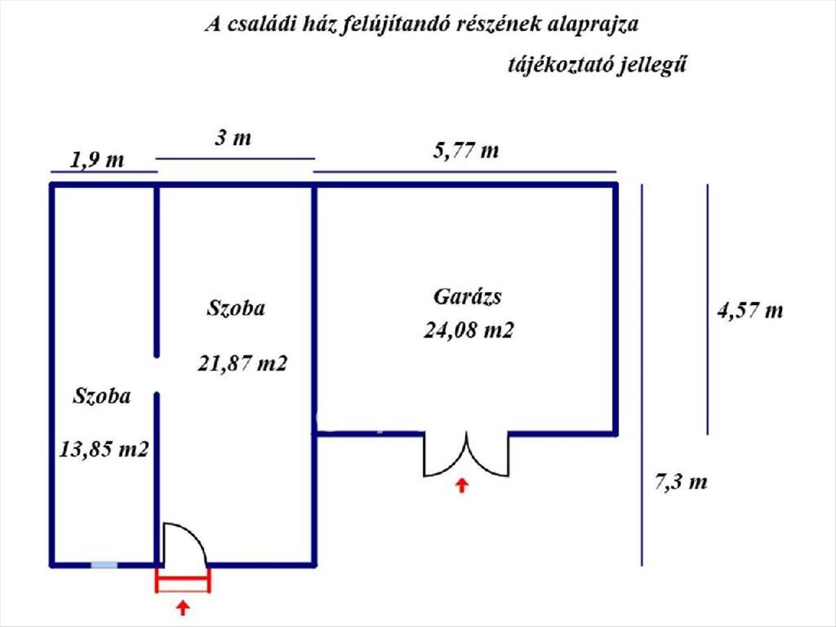 A felújítandó, téglából épült házrész kettő szobából és egy garázsból áll. Az összes helyiség beton burkolatot kapott. a fűtés jelenleg nem kialakított. a két szoba összenyitása a házzal egyszerűen megoldható.