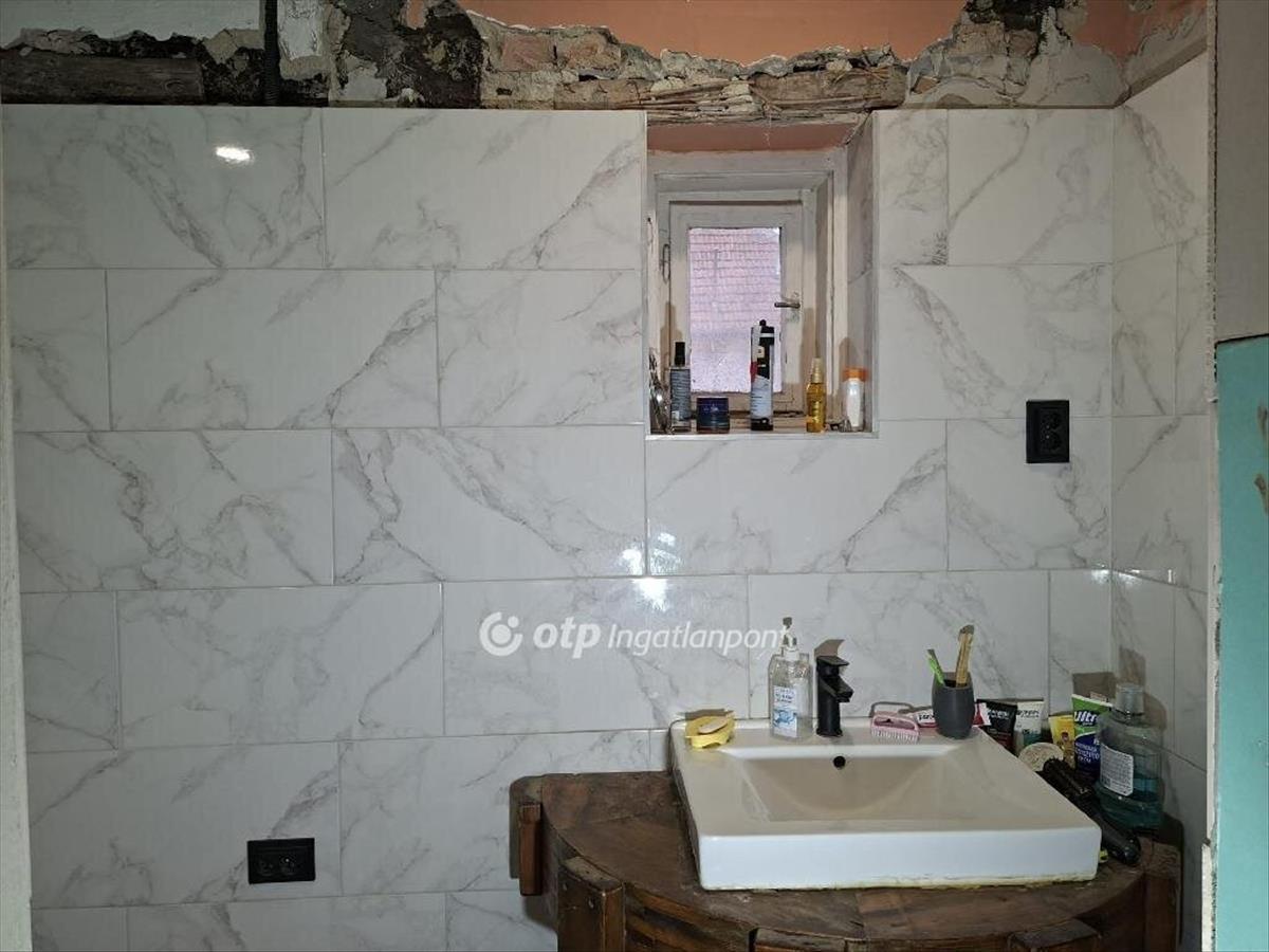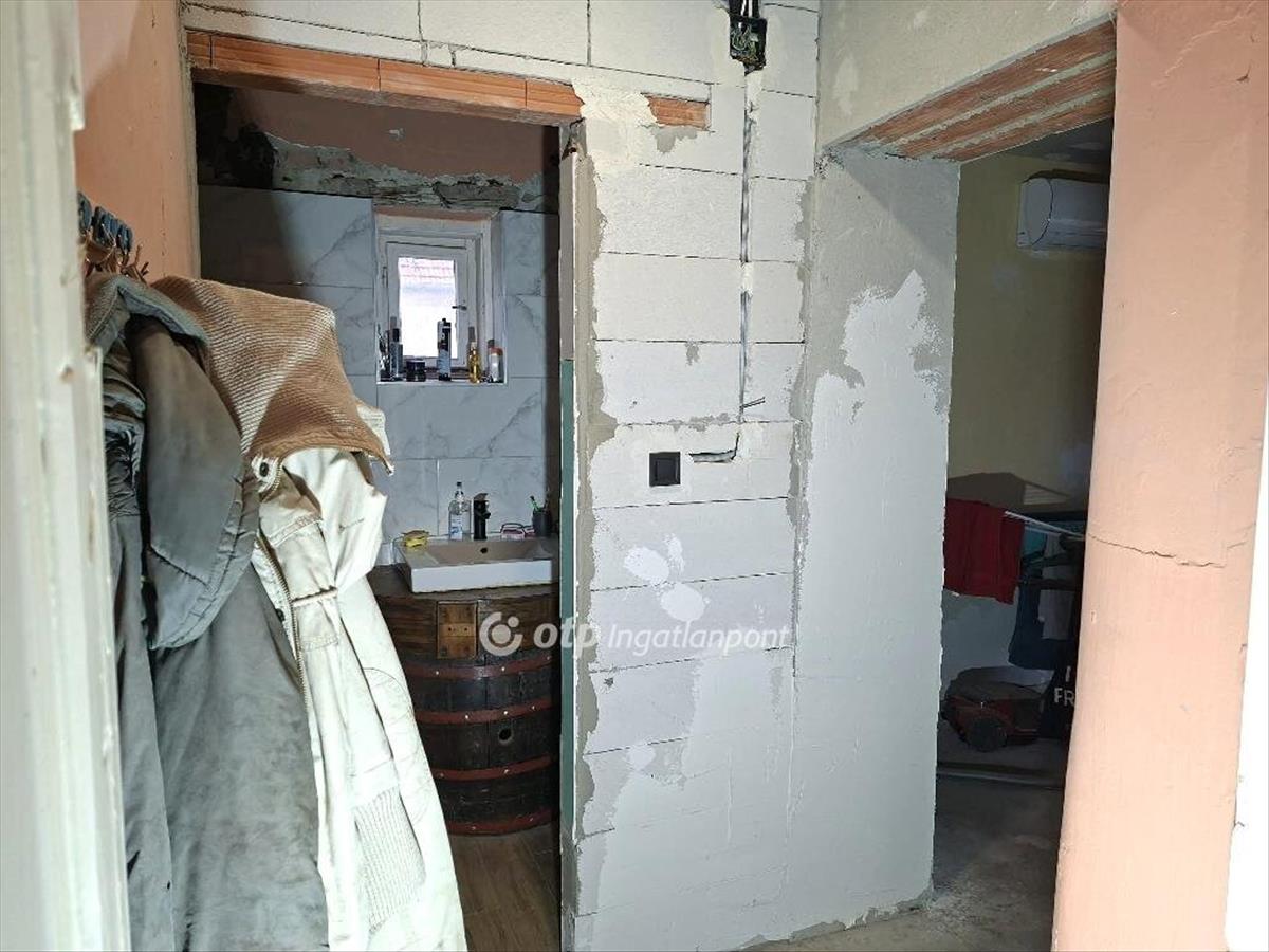 A vegyes falazatú, felújítás alatt álló ingatlanban található 2 szoba, előtér, fürdőszoba wc-vel, konyha és nappali ill. a bejáratnál fedett terasz. Közművekkel rendelkezik, de a gáz régebben kikötésre, az óra leszerelésre került, visszakötése megoldható! ! ! , a gázcsonk telken belül van.