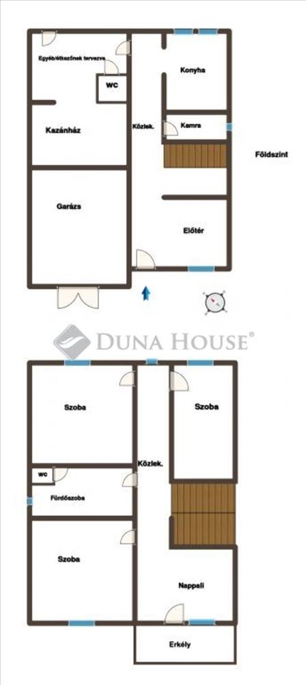 Stabil, biztonságos lépcsőn jutunk fel a felső szintre, ahol három tágas, világos szoba, nagy nappali, erkéllyel, valamint egy tágas fürdőszoba (felújítandó)+ wc található. Minden helyiség megfelelő burkolattal ellátott (2 szoba szép laminált padló, 1 szobában puha padlószőnyeg, többi helyiség járólap).