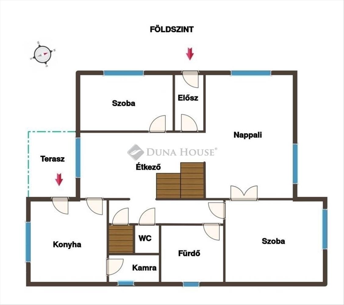 Nyílászárók: Jó állapotú fa ablakok redőnnyel felszerelve.