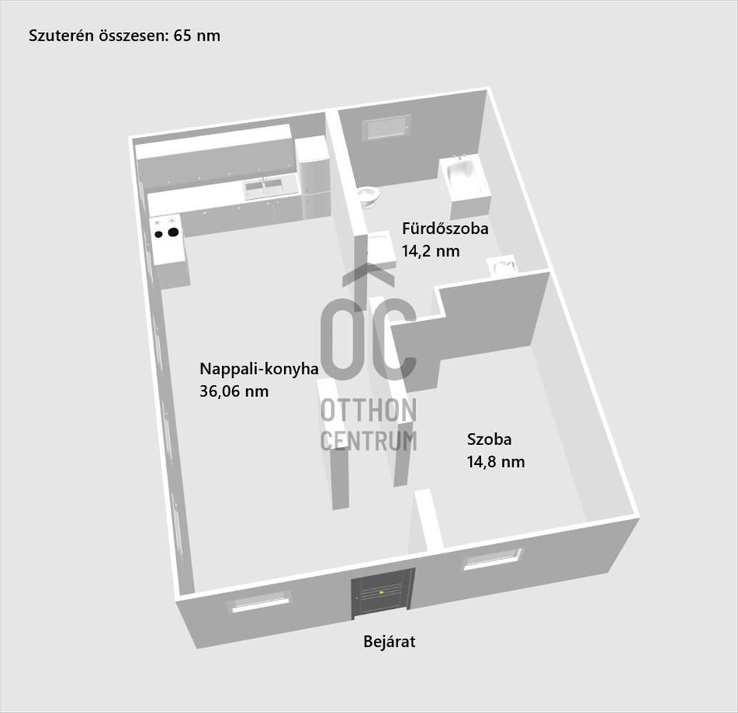 - Szuterén: 65 nm , összkomfortos, 1 szoba, nappali-étkező-konyha egyben, 1 fürdőszoba elrendezésű.