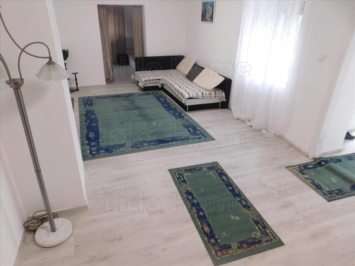 -Elrendezés: étkező helyiség, főző fülke, fürdőszoba káddal WC-vel, nappali, amelyből három szoba nyílik.