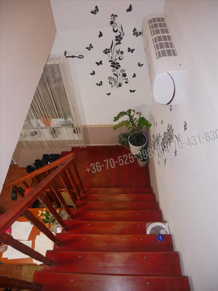 A tetőtérbe vasvázas tömörfa lépcső vezet.