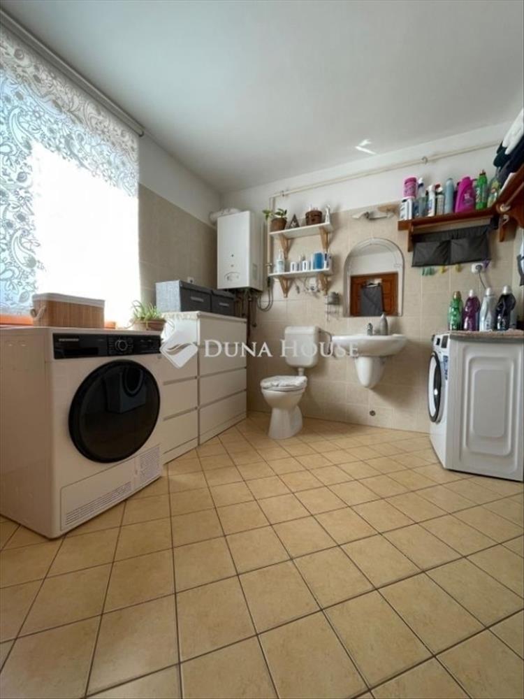 Különálló háztartási helyiség mellékhelyiséggel, mely helyt ad mosó- és szárítógépnek (10, 8 m²).