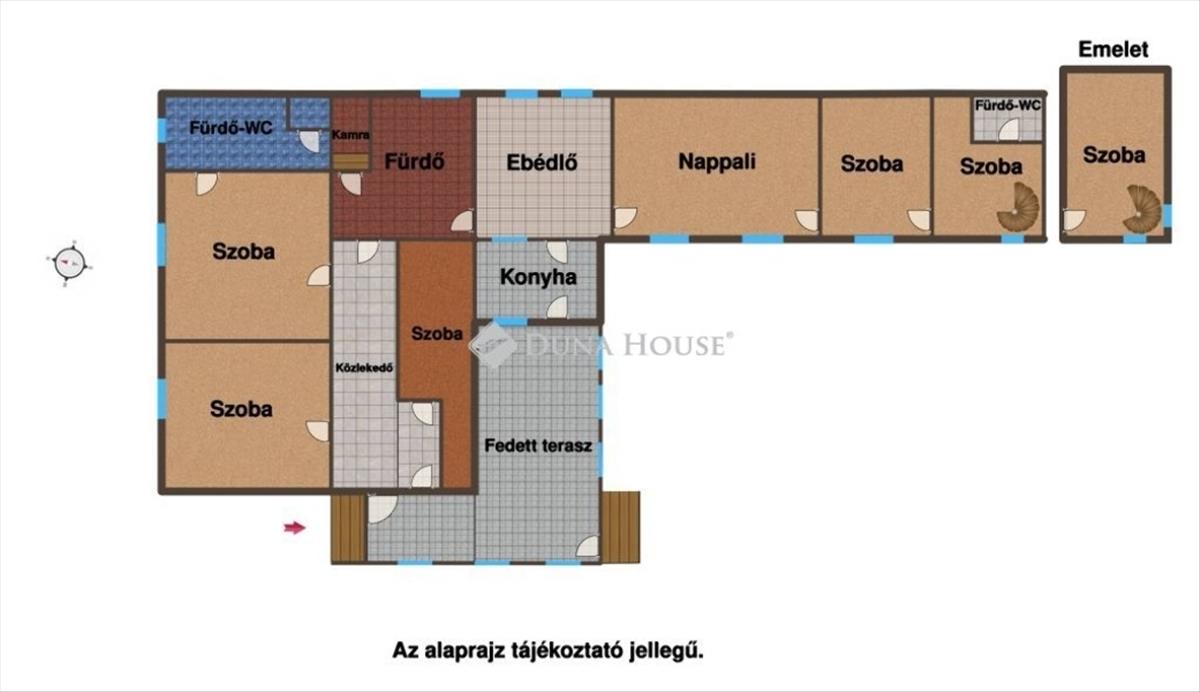 A ház szerkezetileg stabil, a fűtése gázzal és fatüzeléssel (vízteres kandallókkal) is megoldható, így a rezsi kedvezően alakítható.