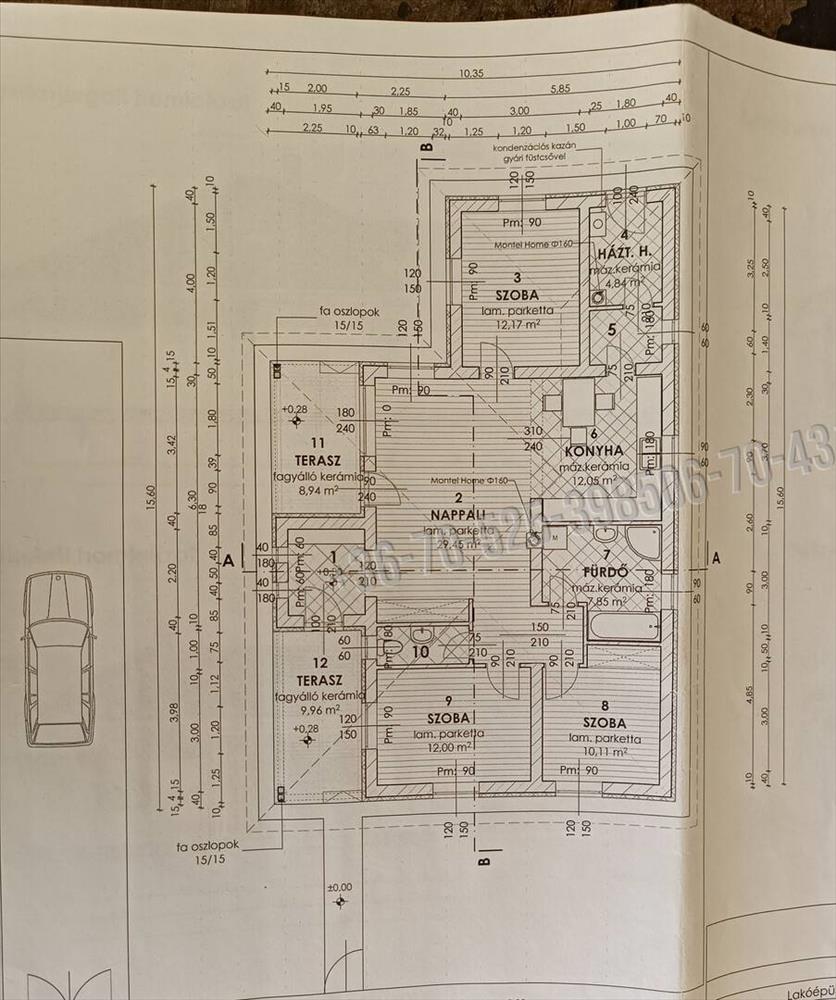 Az épület műszaki adatai: 15 cm. Homlokzati szigetelés. Lábazati szigetelés. Födém szigetelés: 25 cm. Padlófűtés a hidegburkolatok alatt, radiátorok a melegburkolatos szobákban. a fűtés és meleg víz kondenzációs gázcirkóról történik, plusz két hűtő- fűtő klíma is beszerelésre kerül.