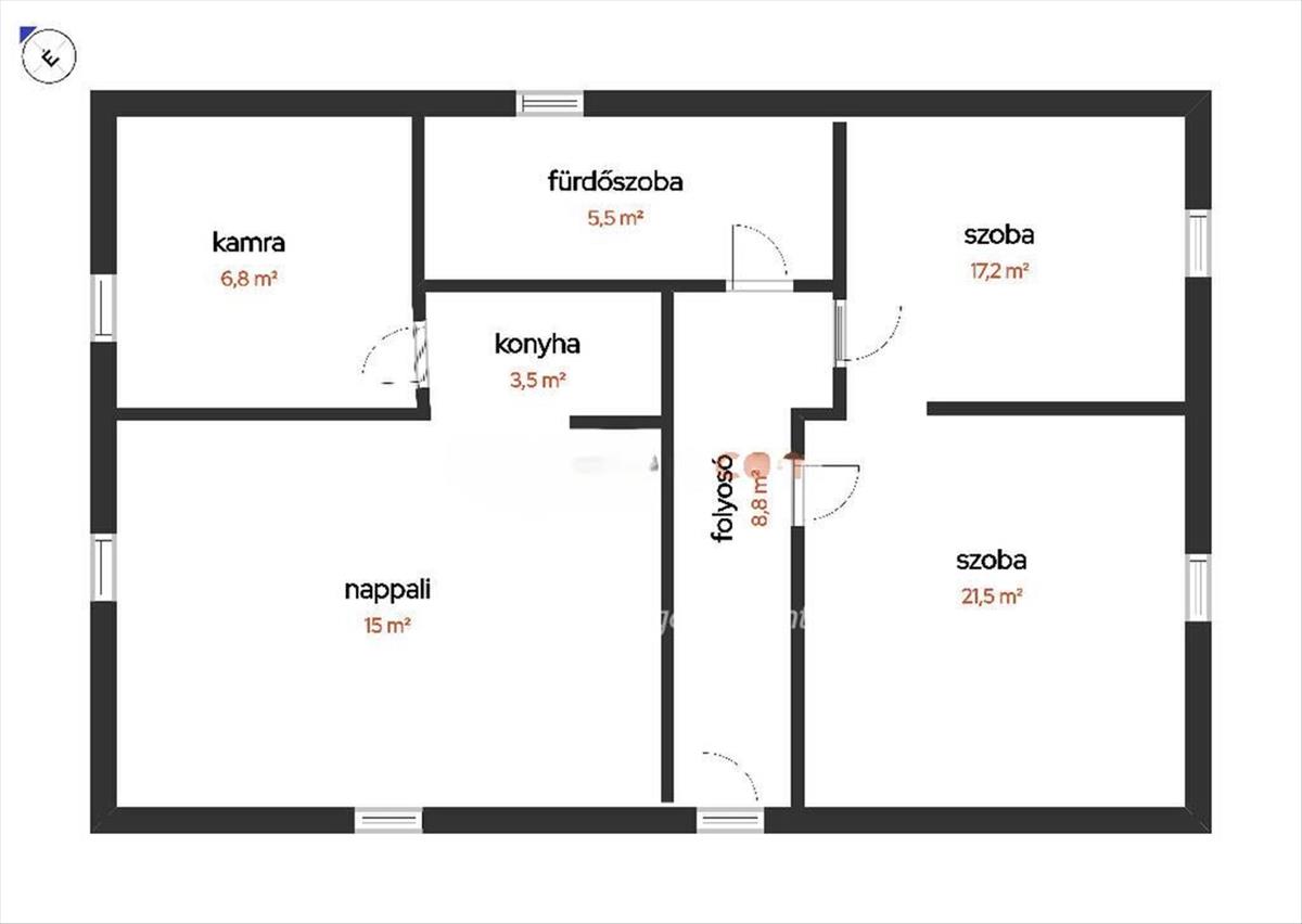 Az ingatlan elrendezése praktikus: 2 nagyszoba, egy tágas nappali, konyha, fürdőszoba és kamra is helyet kapott benne, így kiváló alapot nyújt egy kényelmes családi otthon megteremtéséhez.