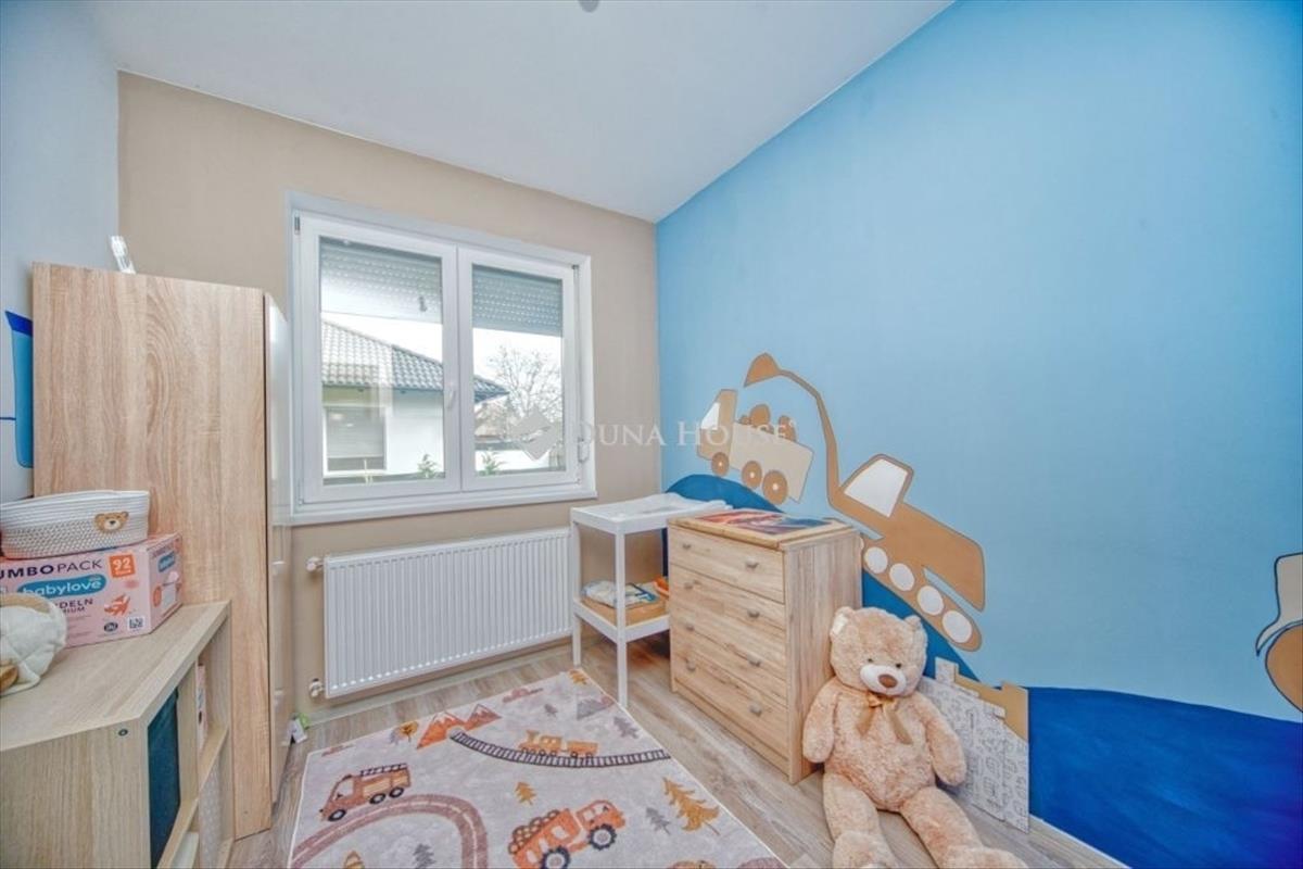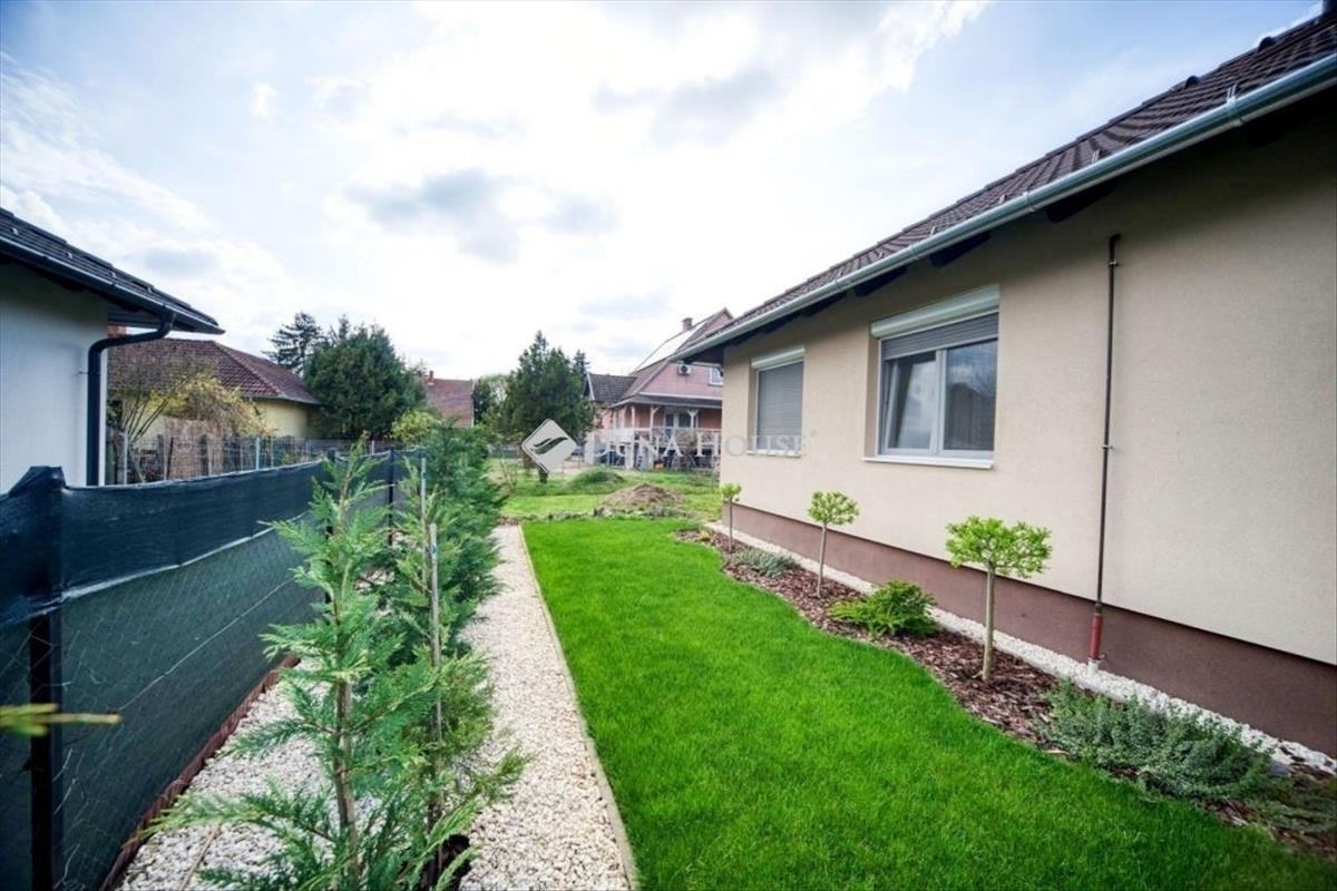 Eladó újszerű 4 szobás önálló családi ház ALBERTIRSÁN! Eladásra kínálunk Albertirsán egy 91 m2 hasznos alapterületű önálló családi házat 528 m2-es telken. Helyiségeket tekintve kialakításra került 4 darab hálószoba, amerikai-konyhás nappali, fürdő WC-vel és egy külön wc, előtér. a hasznos alapterületen kívül egy részben fedett 15 m2-es terasz és egy 3, 4 m2-es szélfogó került kialakításra. Műszaki leírás:Az épület beton alapra, téglából, fa födém és tetőszerkezettel, betoncseréppel épült. 12 Cm lábazatai, 15 cm homlokzati, 30 cm födémszigetelés. 6 Légkamrás 3 üveges fehér műanyag nyílászárók. Fűtését és melegvíz ellátását kondenzációs gázkazán látja el. a hőleadók radiátorok, a fürdőszobában törölközőszárító, ezen kívül felszerelésre került egy hűtő-fűtő klíma is. a kedvezőbb energiahatékonyság érdekében, napelemrendszer került kiépítésre. Az udvar 528 m2, önálló, rendezett, körbekerített. Parkosítása jelenleg is zajlik, locsolórendszer kerül kiépítésre és a gyepszőnyeg telepítése is elkezdődött. a telek alkalmas több autó parkolására és egy lemezből, beton alapra készült tárolóhelyiség is rendelkezésre áll. ÖRÖMMEL állok rendelkezésére a duna house kínálatában megtalálható összes ingatlannal kapcsolatban. Hétvégén is várom megtisztelő HÍVÁSÁT!