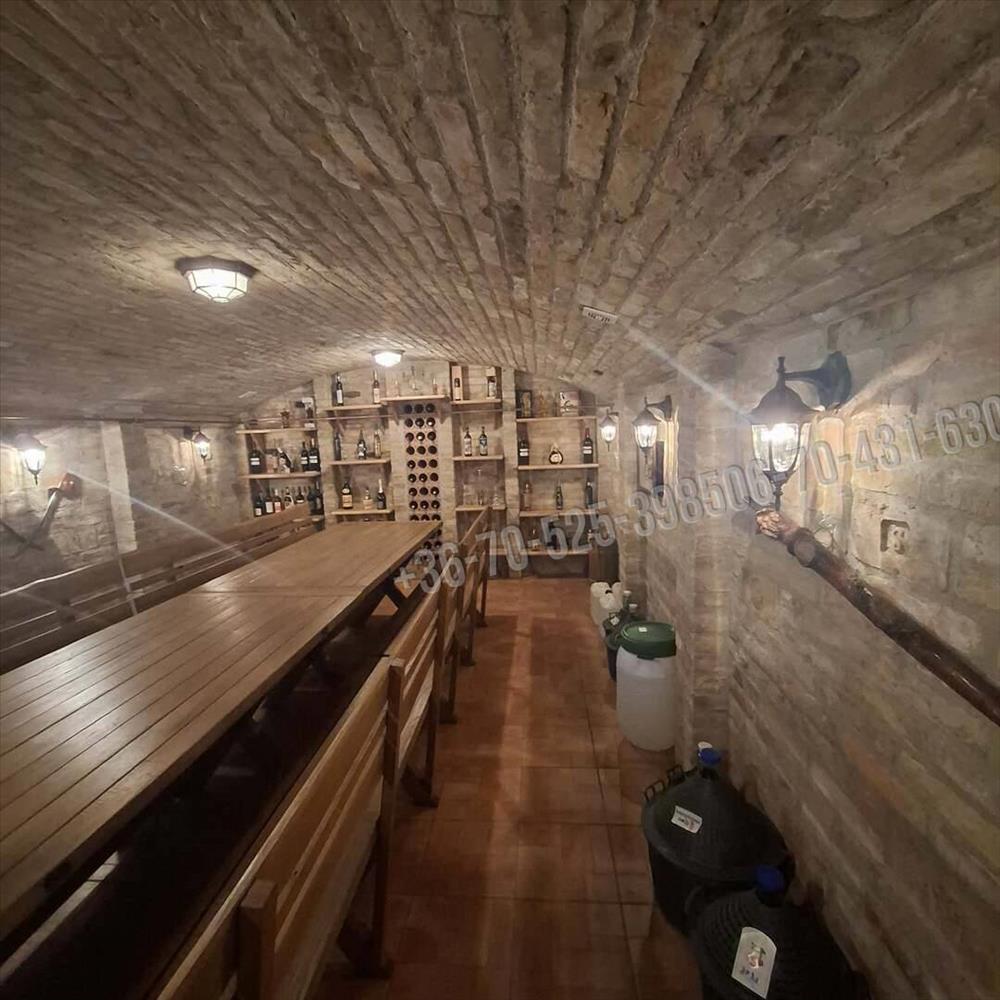 Az épület mélyalapozással épült, hőszigetelt tégla falazattal fafödémmel, osztott nyeregtetős Bramac cserép héjalással. Az épület alatt egy téglával kirakott 27 nm . -Es borospince húzódik. a földszinten: amerikai konyhás- nappali-étkező, osztható hálószoba, 2 fürdőszoba, finn szauna, valamint az udvari fedett medence, a lakótérbe csatlakozik.