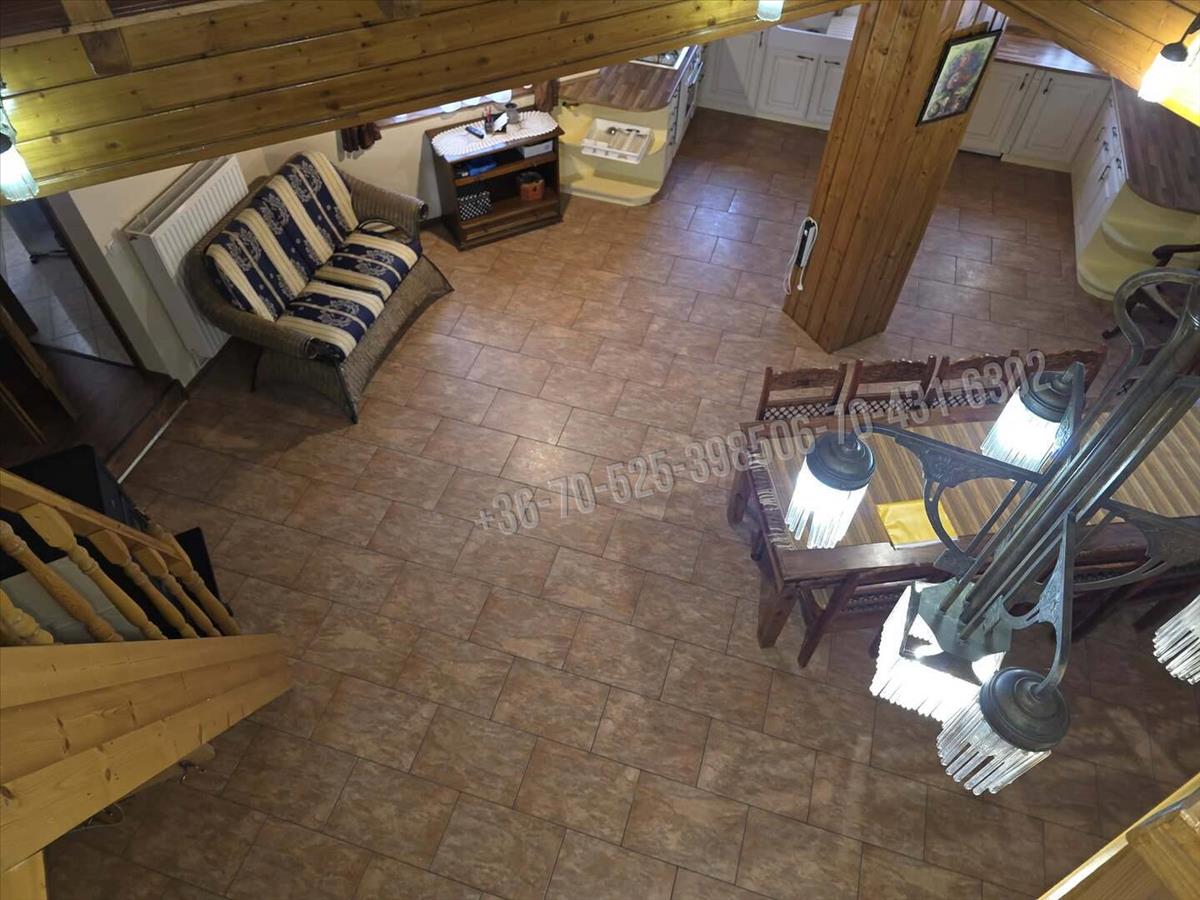 A fa uralja a tágas belsőteret, csodás harmóniában a tér és a galériás látványfödém. Igényes berendezés az árban!