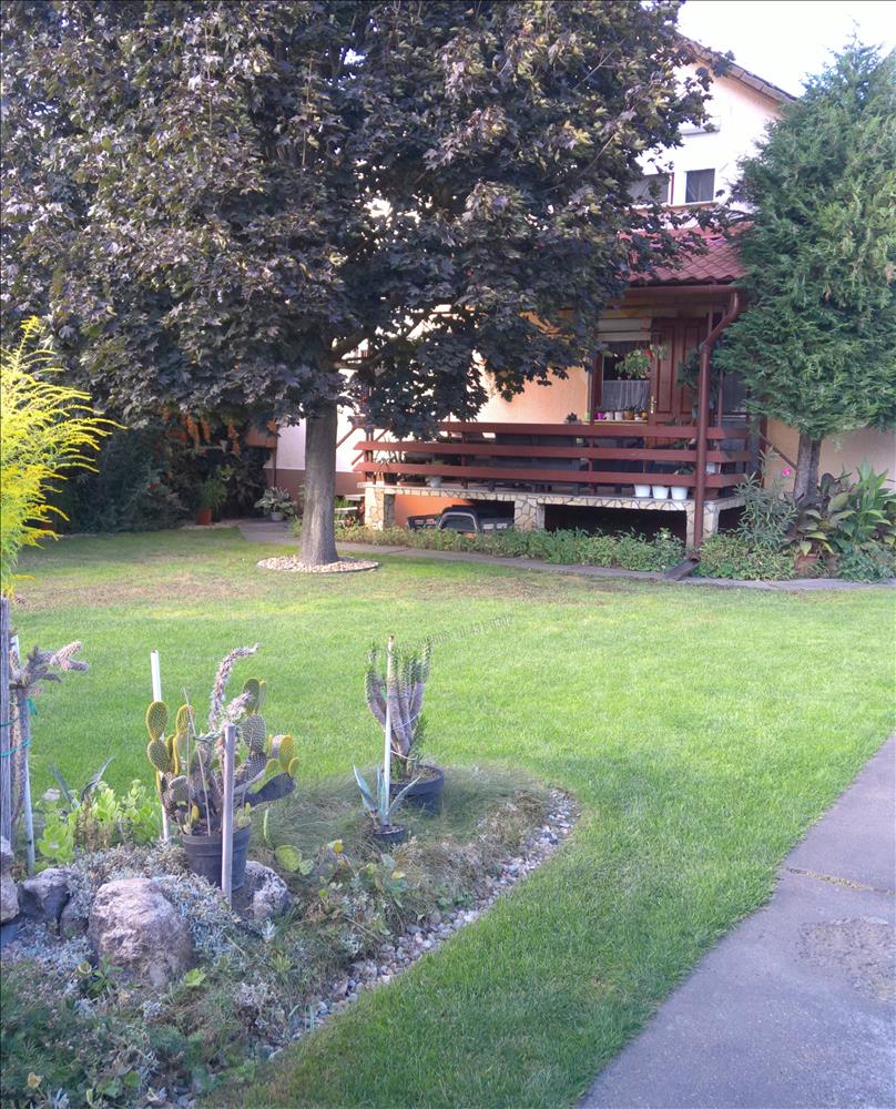 Az udvar csodás parkosított, örökzöldekkel, egyedi dísznövényekkel egyedivé varázsolja a környezetét.