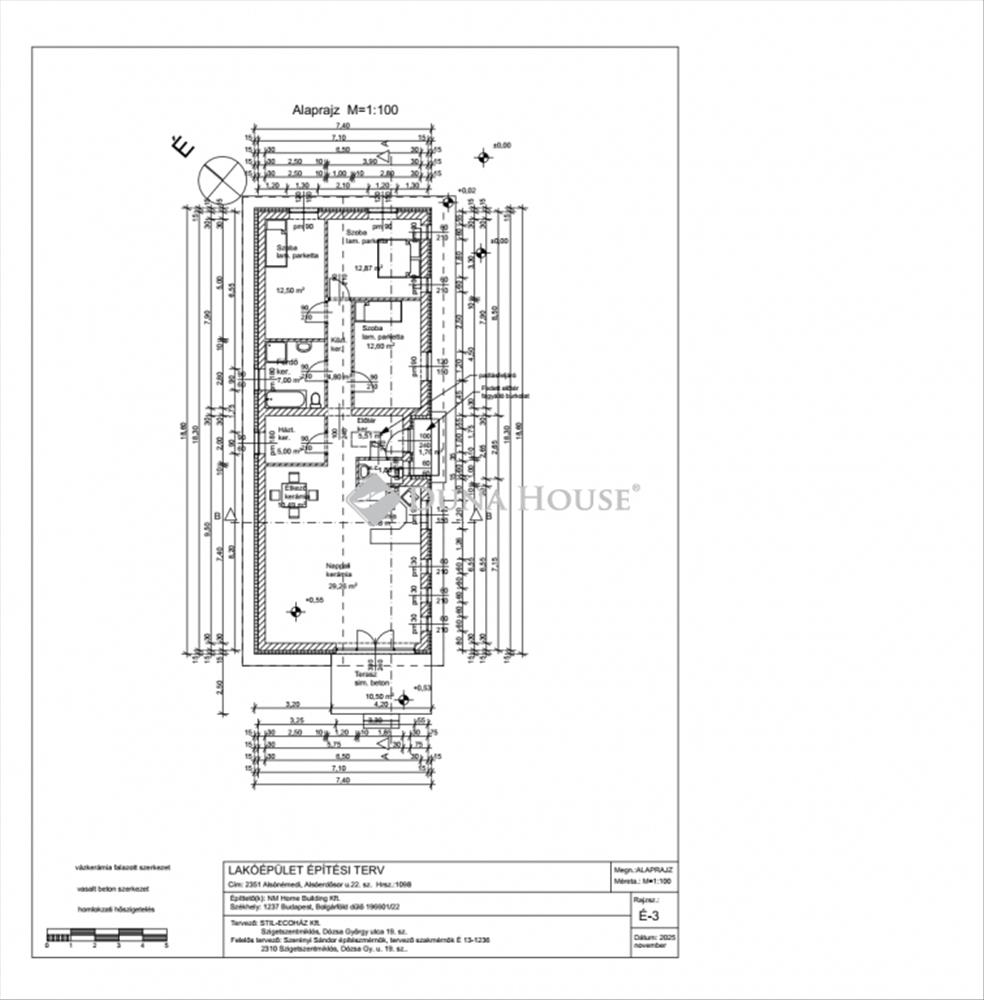 A 110 m²-es családi ház minőségi alapanyagokból épült, így hosszú távra biztosít kényelmes és energiatakarékos életet.