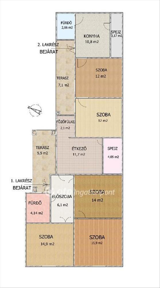 Két külön lakrész (75, 6 m2 + 40, 9 m2)